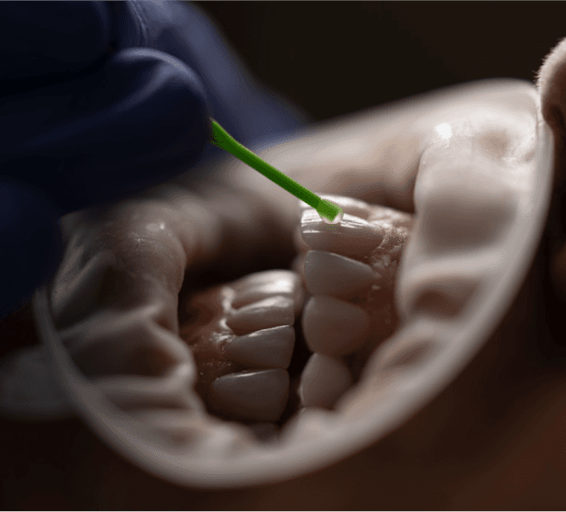 O paciente usa moldeiras personalizadas com gel branqueador em casa, durante um período de 7-10 dias. • Vantagens: Maior controlo sobre o branqueamento e menos sensibilidade. • Desvantagens: Resultados mais lentos, requerendo vários dias para alcançar o efeito desejado.